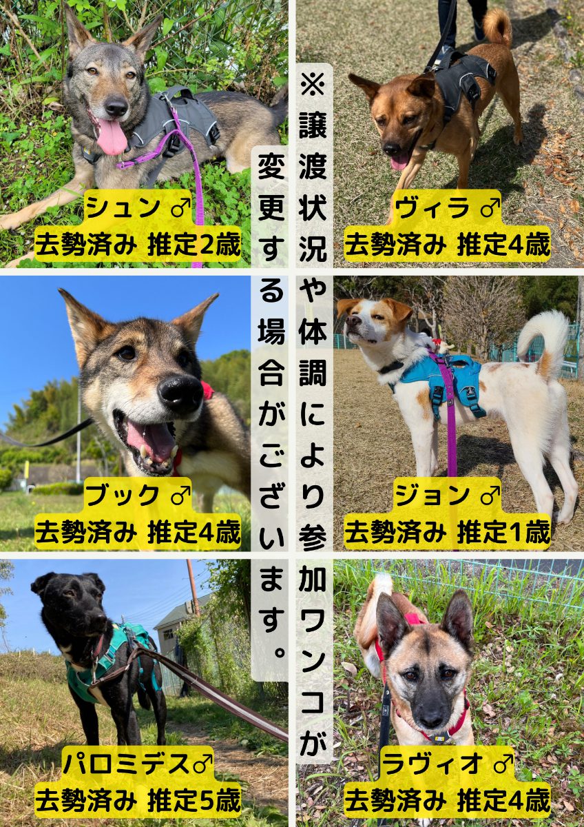 生駒譲渡センターの里親募集中の保護犬5~6頭が参加予定。