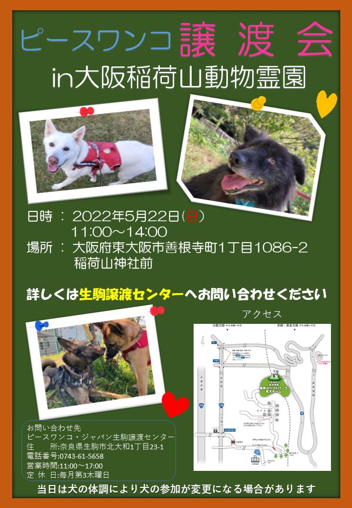 生駒譲渡センターで里親募集中のワンコが6~7頭参加する予定です。一頭でも多くのワンコがご家族が出会えるよう、お近くにお住まいの方はぜひご参加くださいませ!
