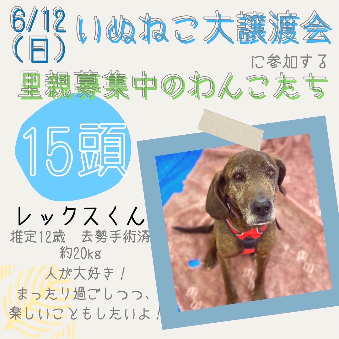 神石シェルター在籍のわんこが15頭参加します。