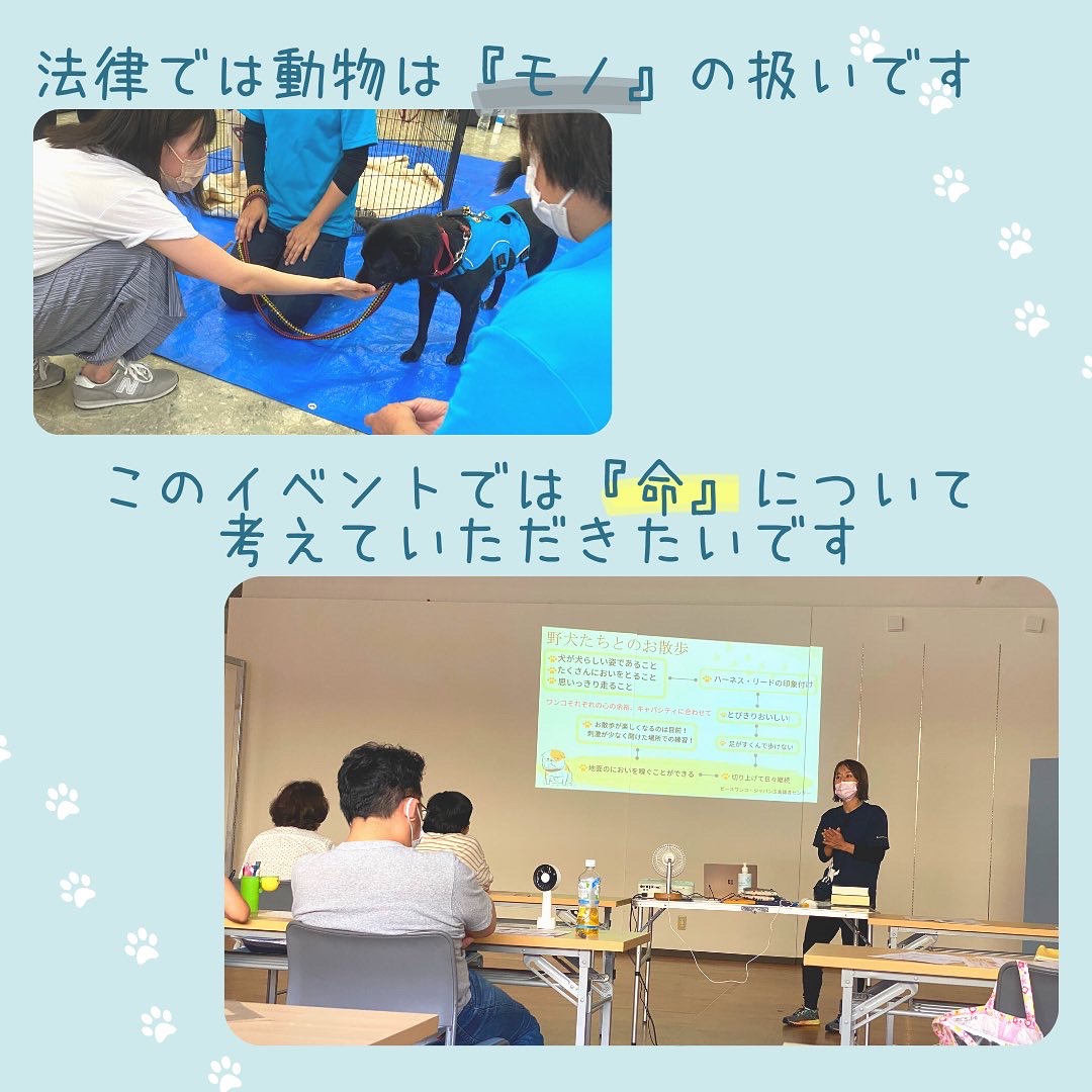 - 里親募集中のわんこもゲスト参加し、実際に『保護犬』『命』と触れ合っていただきます。