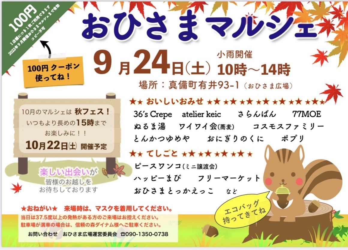 9/24(土)、岡山県倉敷市で開催される「おひさまマルシェ」に、真備町を盛り上げるべくピースワンコの神石高原シェルターで里親募集中のワンコたち共に応援にいきます。是非お立ち寄りください。