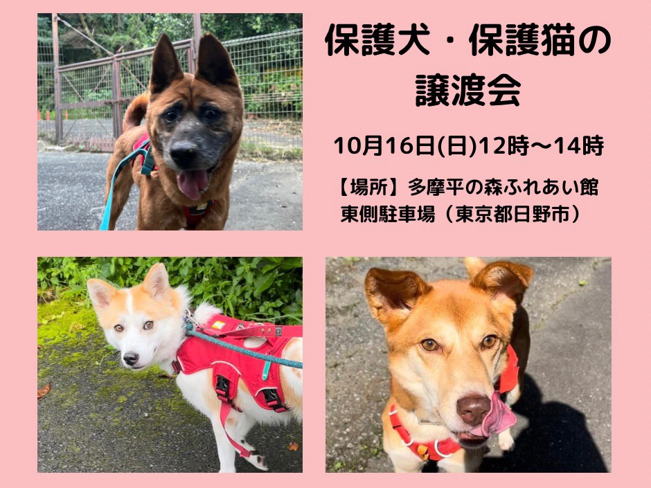 【ピースワンコの譲渡会】10/16(日)「保護犬・保護猫の譲渡会」に参加(あきる野譲渡センター)