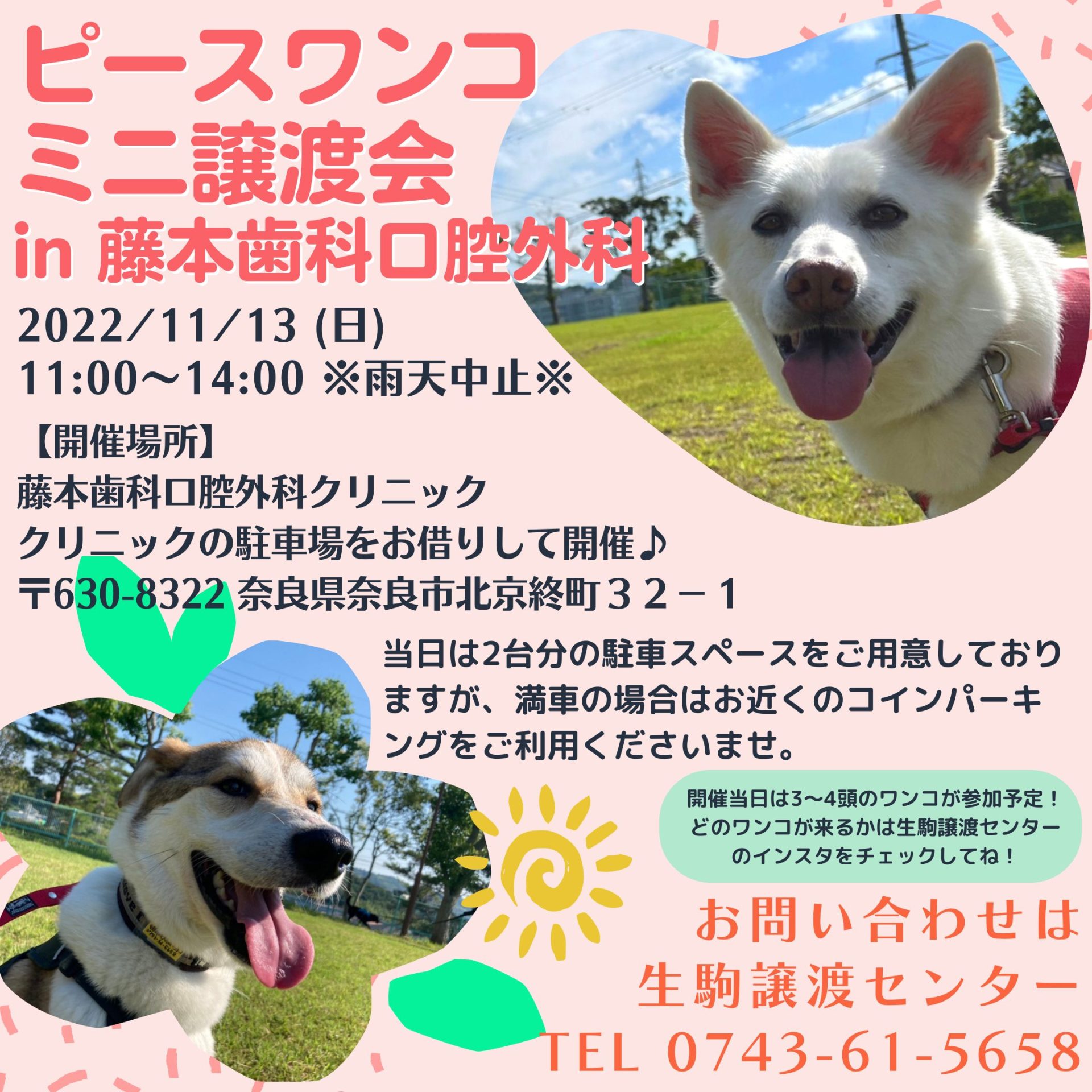 11/13(日)藤本歯科口腔外科さんの駐車場をお借りしてミニ譲渡会を開催いたします。