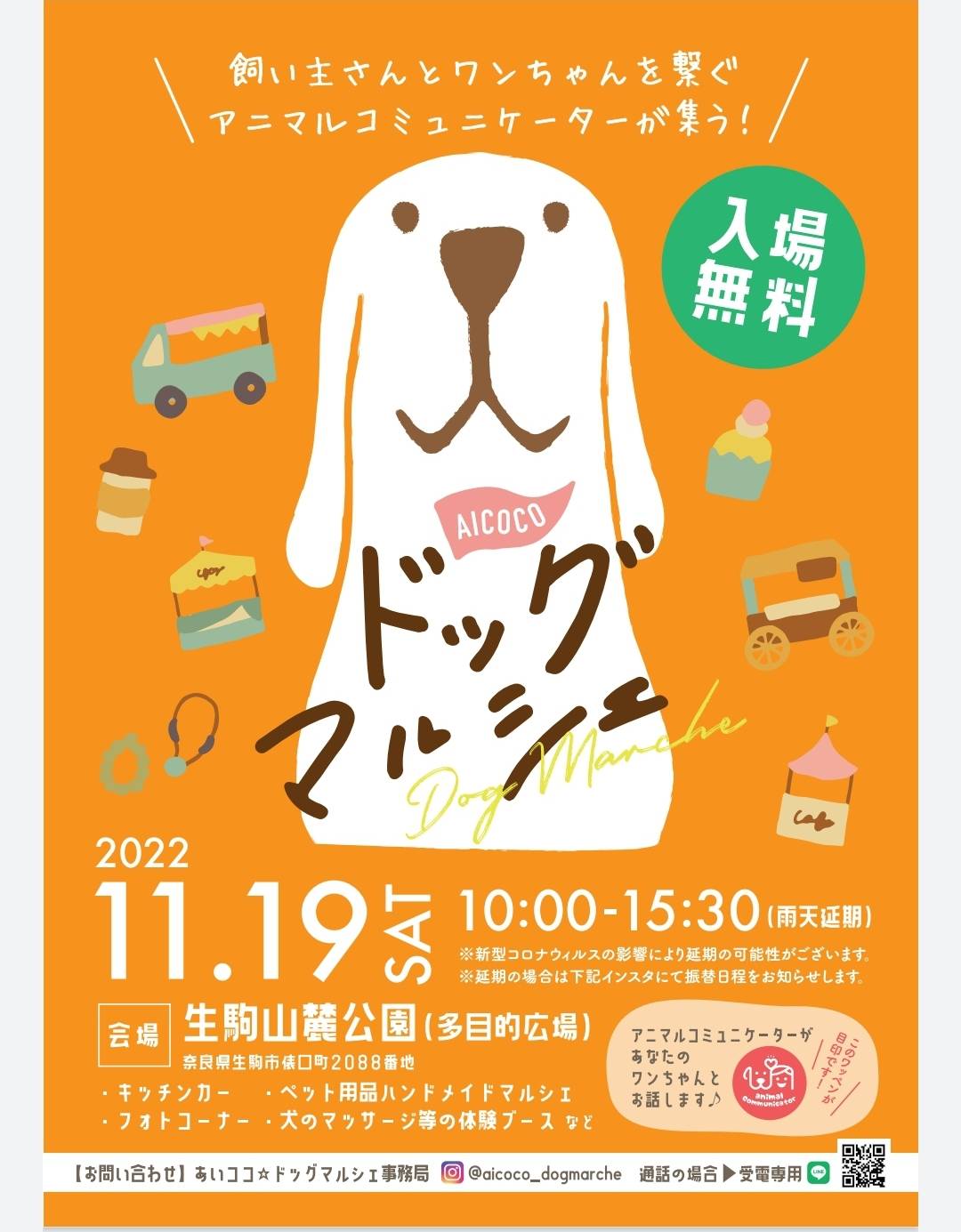11/19(土)生駒山麓公園の多目的広場を半分貸し切って開催されるドッグマルシェに譲渡会として生駒譲渡センターから里親募集中のワンコたちが参加することになりました。