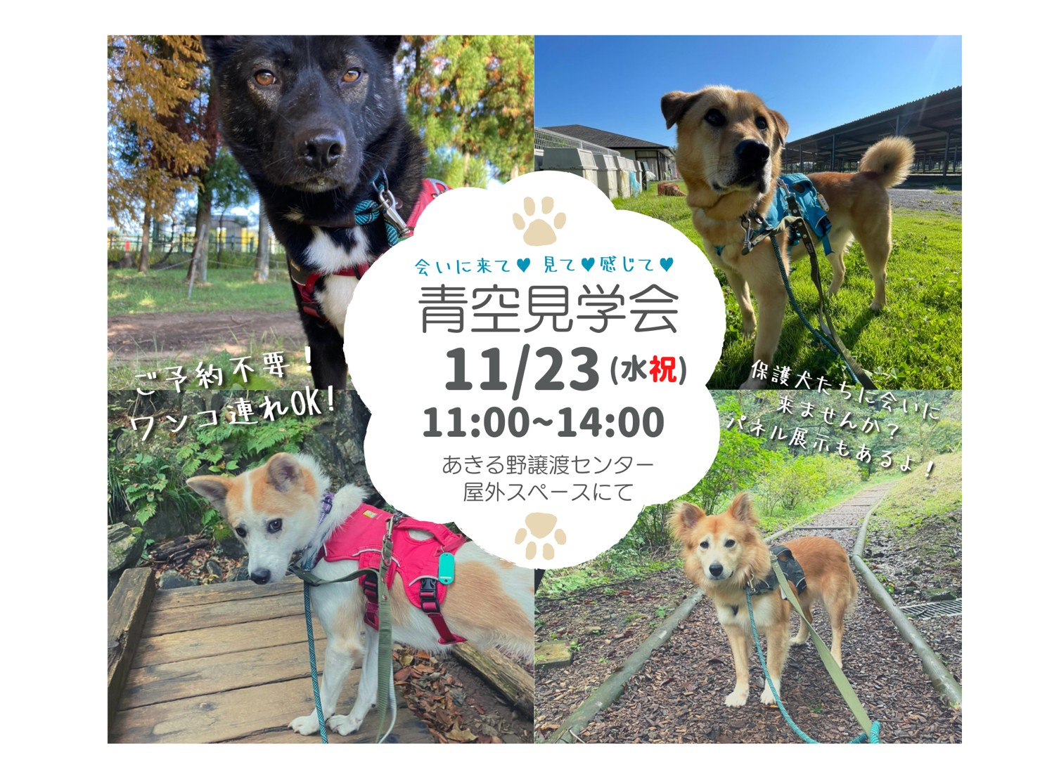 【ピースワンコのイベント】11/23(祝水)「青空見学会」開催(あきる野譲渡センター)