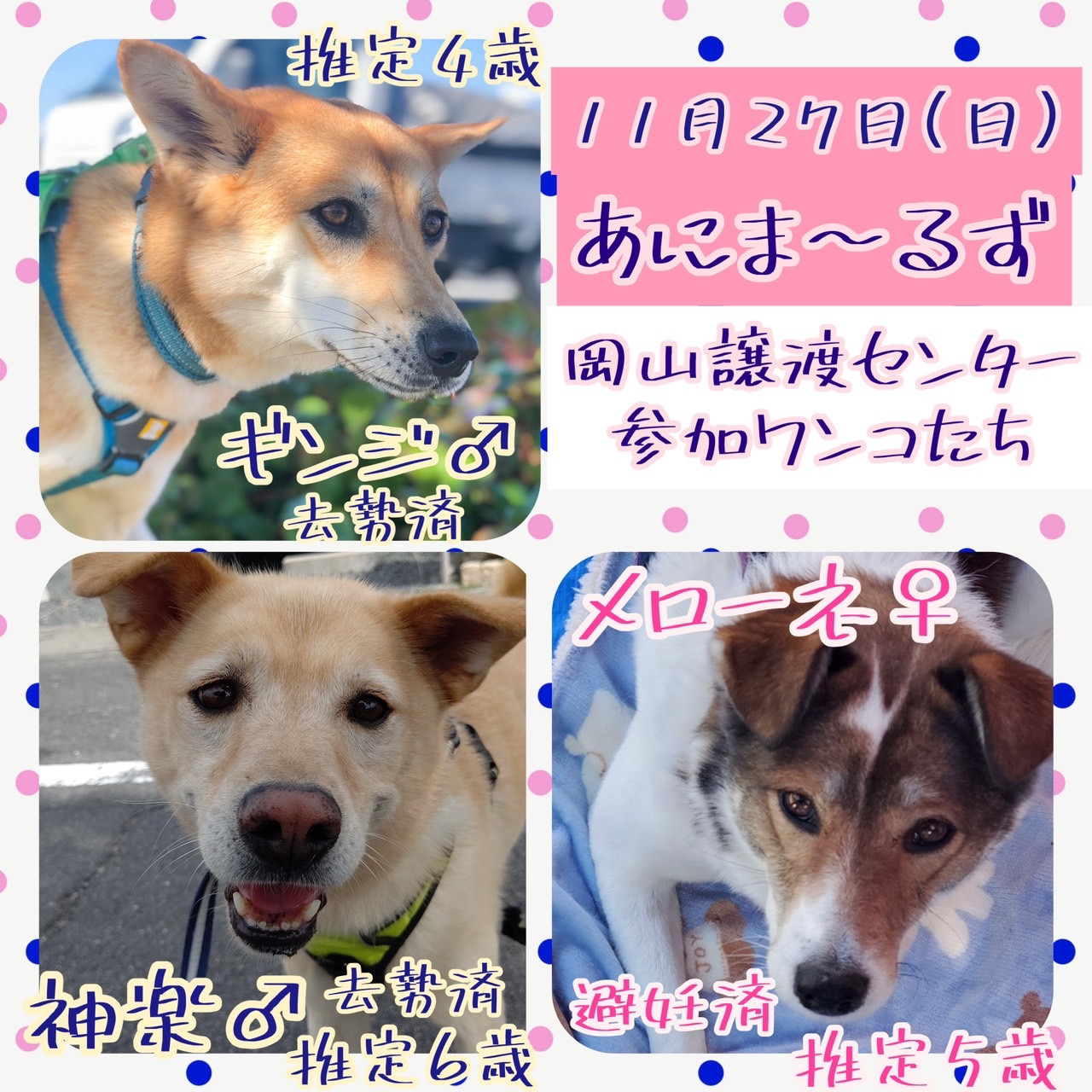 【ピースワンコの譲渡会】11/27(日)「第5回あにま~るず 動物たちと楽しむマルシェ」に参加(岡山)