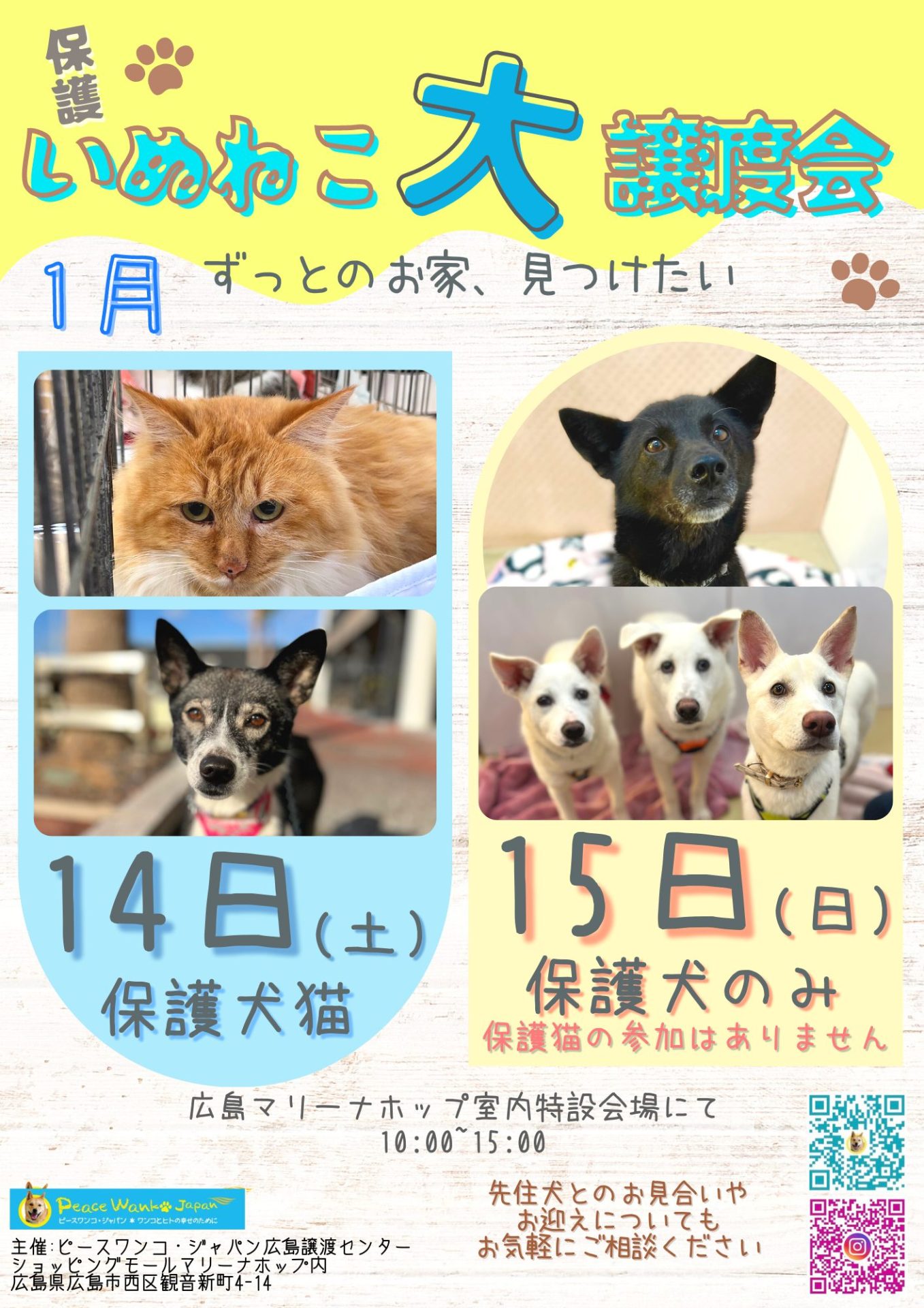 広島マリーナホップにて、定期的に「保護犬猫の家族を探す会」を行います。