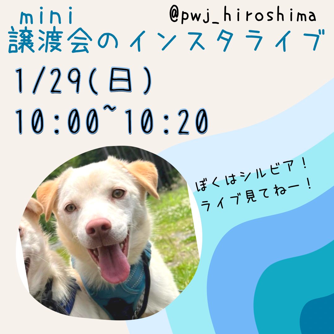 【ピースワンコの譲渡会】1/22・29(日)「mini譲渡会~シェルターわんこがやってくる!~」(広島譲渡センター)