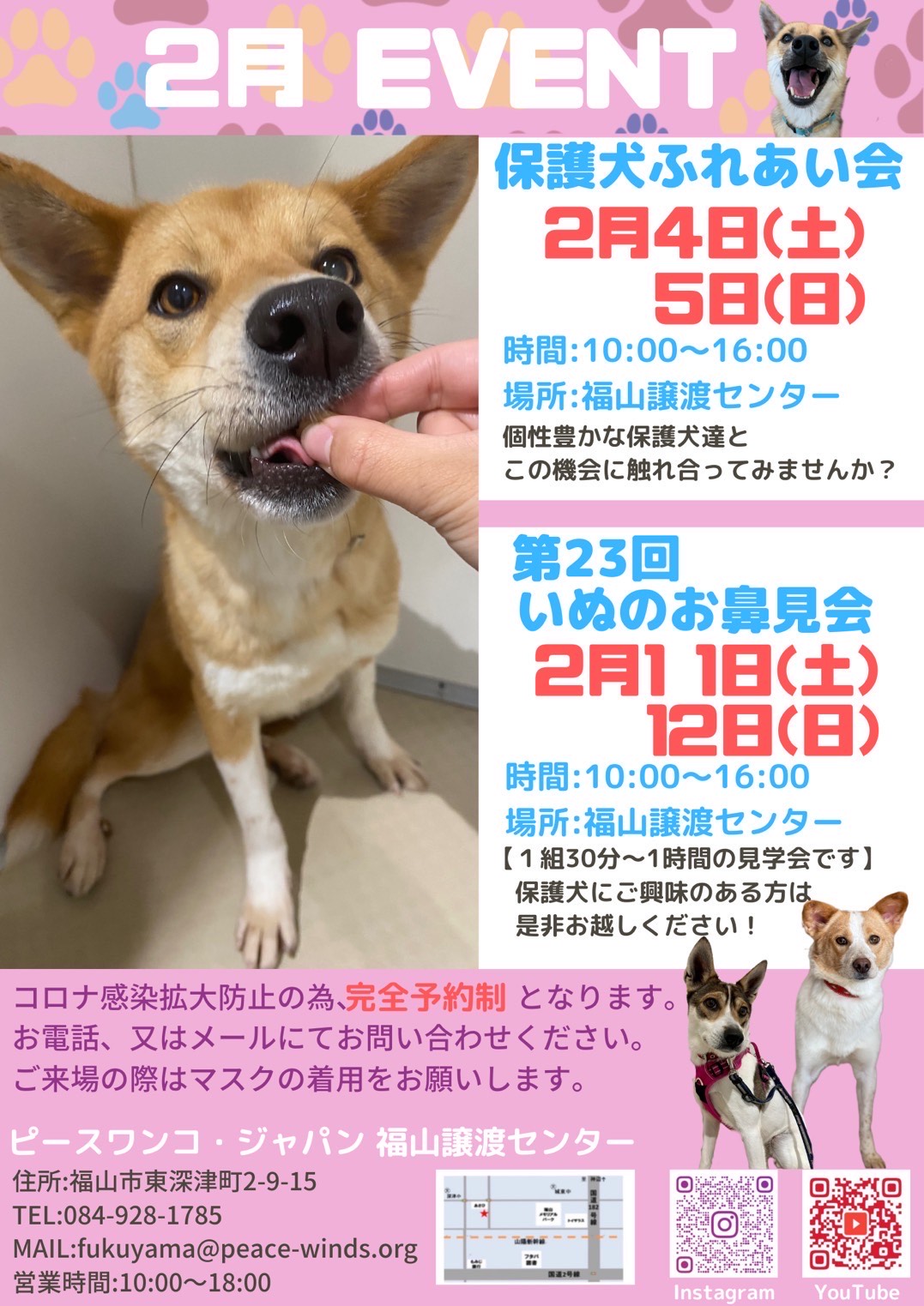 【ピースワンコのイベント】2月イベントのお知らせ(福山譲渡センター)