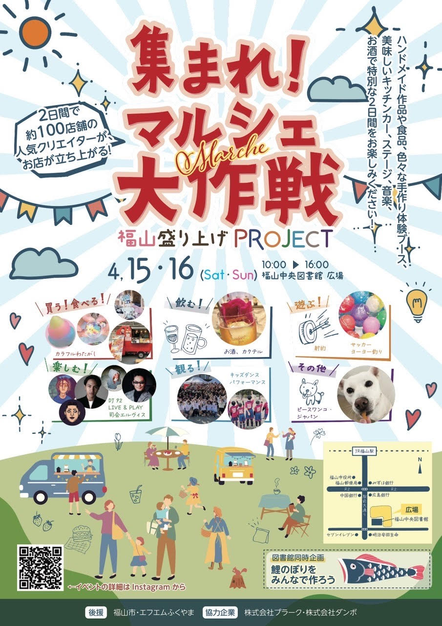 2023年4月15日(土)・16日(日)に福山中央公園で開催される「集まれ!マルシェ大作戦★」に譲渡会で参加させていただくことになりました!福山譲渡センターと神石高原シェルターのワンコたちが参加いたします。物販や飲食、音楽やステージ等、お子様から大人の方まで楽しめるイベントとなっておりますので、是非この機会にお越し下さい。沢山のご来場をお待ちしております!
