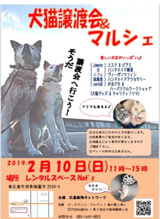 【譲渡会】2/10「犬猫譲渡会&マルシェ」(広島)