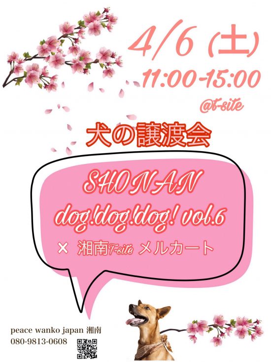 4/6(土)に湘南譲渡センターで、6回目のオープンシェルター型イベント「SHONAN DOG! DOG! DOG!」を開催いたします。