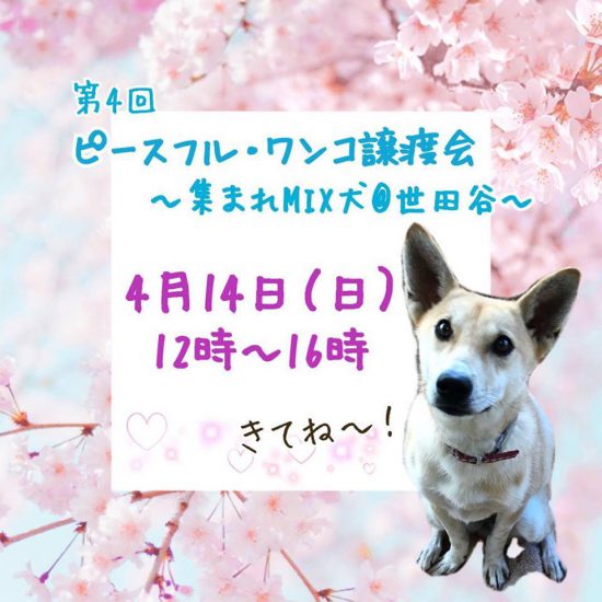 【譲渡会】4/14「ピースフル・ワンコ譲渡会~集まれMIX犬~」(世田谷)