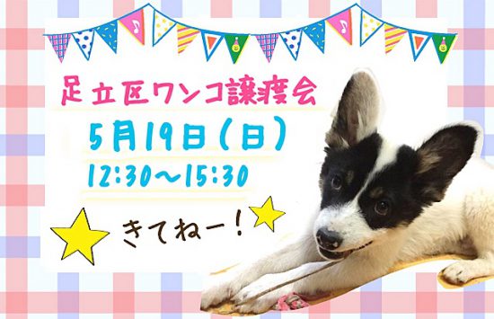 5月19日(日)、クロス動物医療センター足立で「第6回 足立区ワンコ譲渡会」を開催いたします。ピースワンコでは、1頭でも多くの保護動物が温かい家庭に迎えられるように、毎月クロス動物医療センターグループと共同で譲渡会を開催しています。