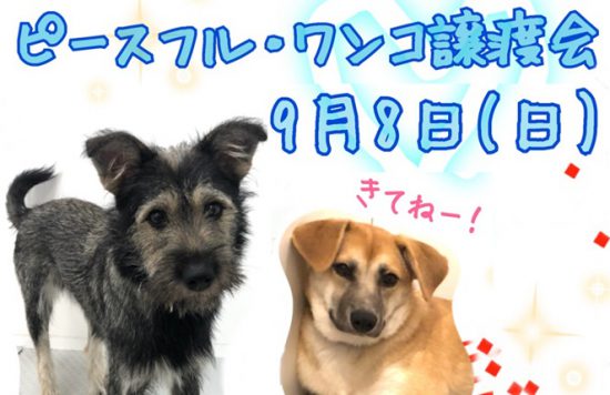 9月8日(日)、ピースワンコ・ジャパン世田谷譲渡センターにて「ピースフル・ワンコ譲渡会~集まれMix犬」を開催いたします。