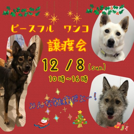【譲渡会】12/8(土)「第11回ピースフル・ワンコ譲渡会~集まれMix犬」(世田谷)
