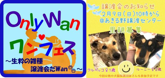 【ピースワンコの譲渡会】2/9(日)「Only Wan ワンフェス」開催(東京・あきる野)