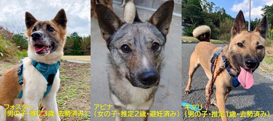 【参加予定のワンコ】神石高原シェルターの検疫犬舎で里親募集中のワンコから3頭が参加予定です。