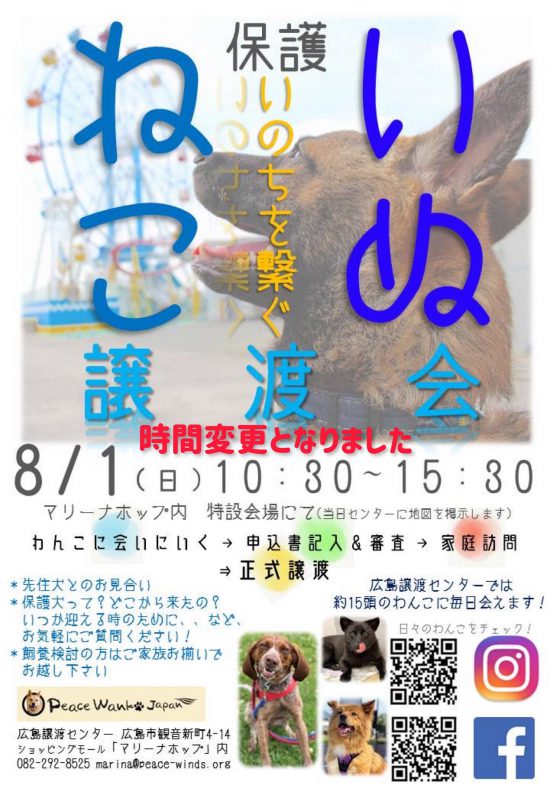 【お問い合わせ先】ピースワンコ・ジャパン広島譲渡センター