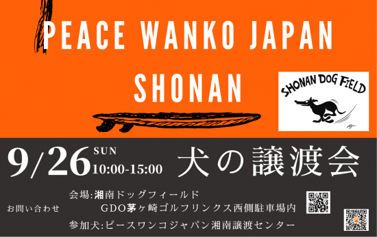 【ピースワンコのイベント】9/26(日)「湘南ドッグフィールド 犬の譲渡会」開催(神奈川)