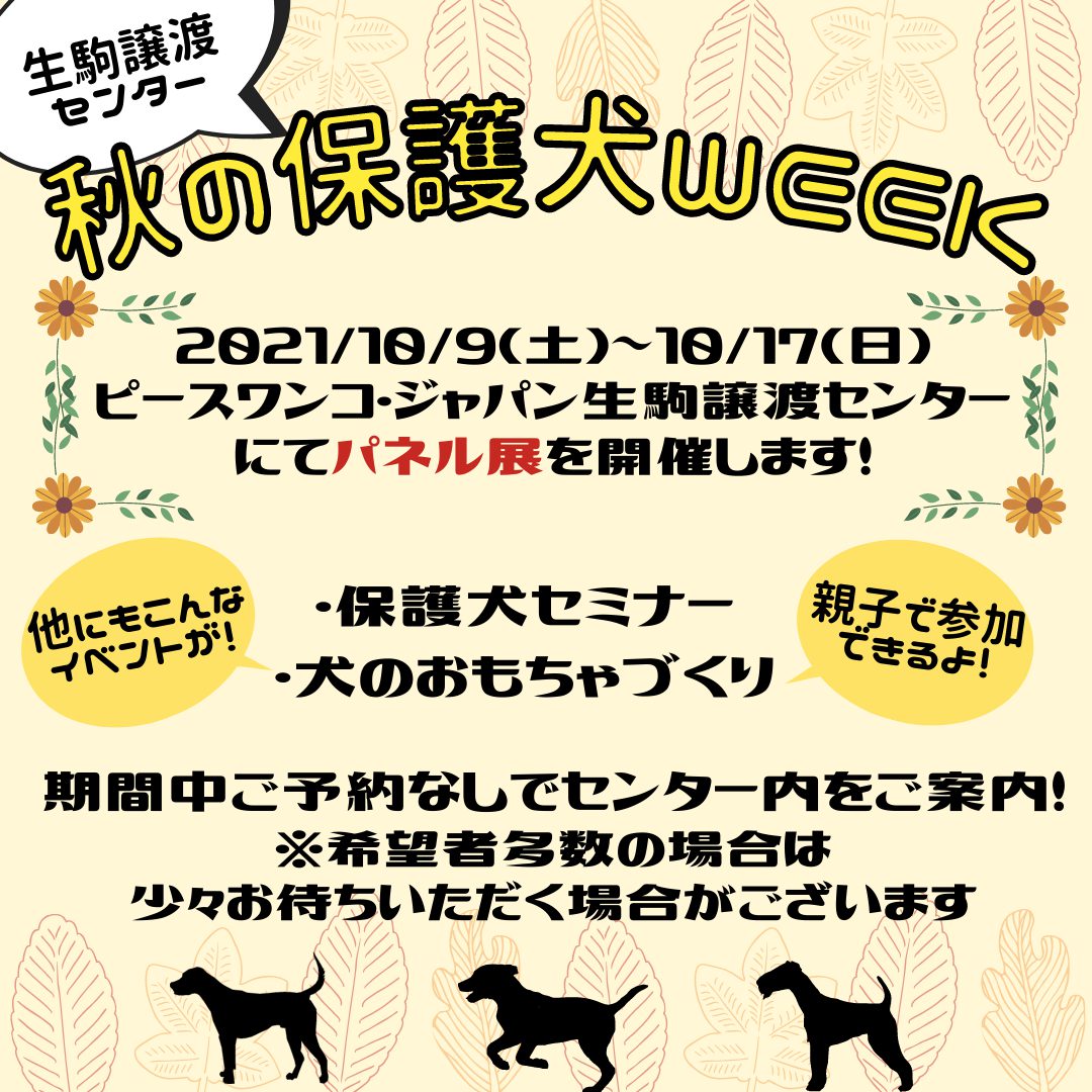 【ピースワンコの譲渡会】10/9(土)-17(日)「保護犬セミナー&パネル展」開催(生駒譲渡センター)