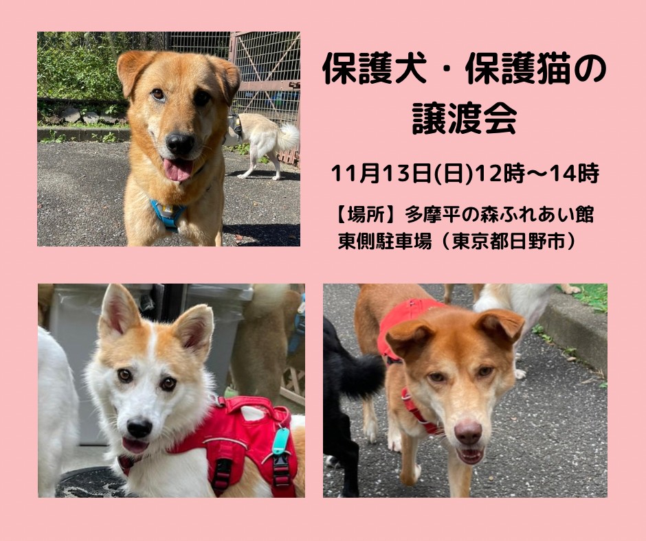 【ピースワンコの譲渡会】11/13(日)「保護犬・保護猫の譲渡会」に参加(あきる野譲渡センター)