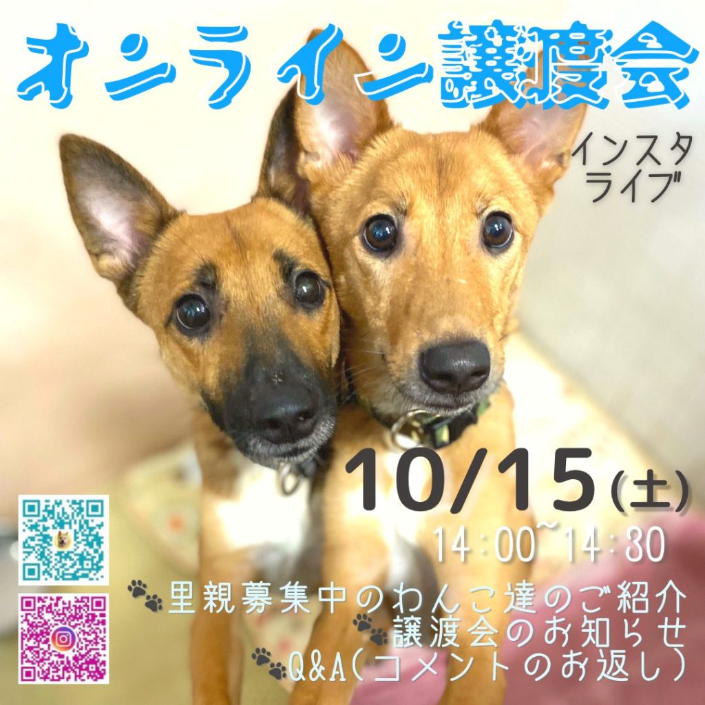【ピースワンコのイベント】10/15オンライン譲渡会(広島譲渡センター)