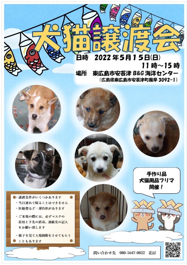 【ピースワンコの譲渡会】5/15「犬猫譲渡会」に参加(広島)