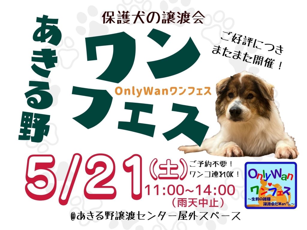 【ピースワンコの譲渡会】5/21(土)「Only Wan ワンフェス」開催(あきる野譲渡センター)