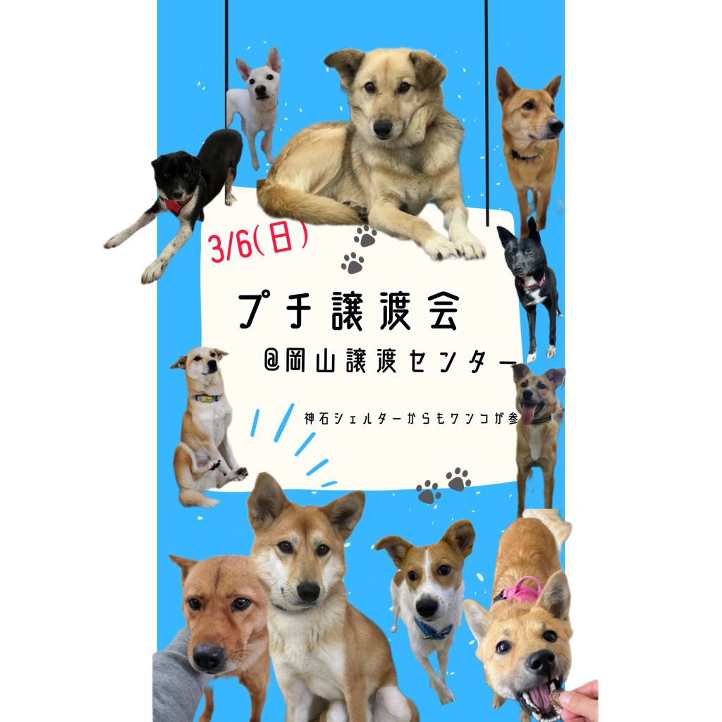 【ピースワンコのイベント】3/6(日)「プチ譲渡会 」開催(岡山譲渡センター)
