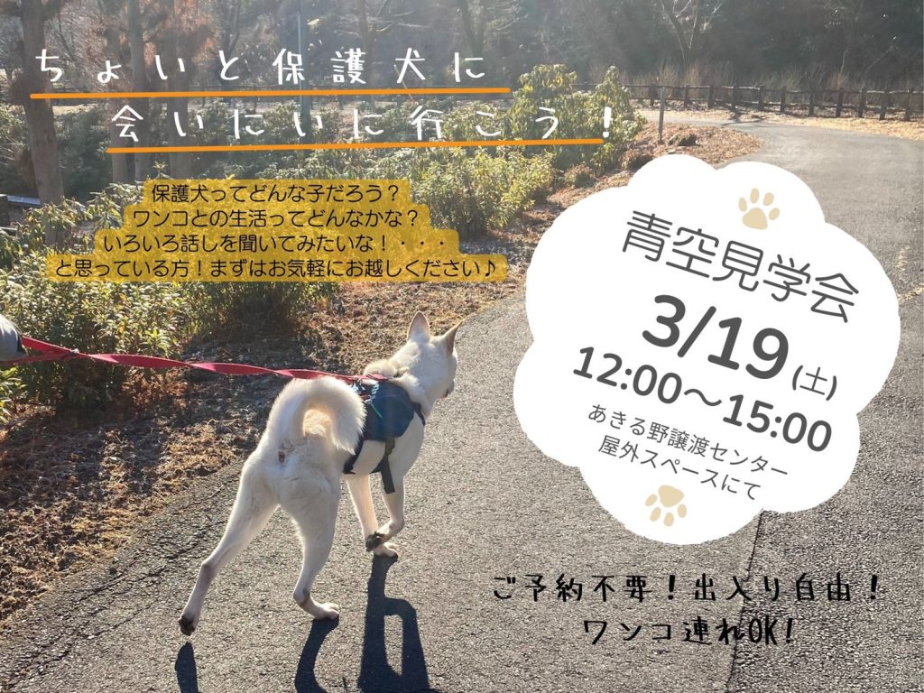 【ピースワンコのイベント】3/19(土)「青空見学会」開催(あきる野譲渡センター)