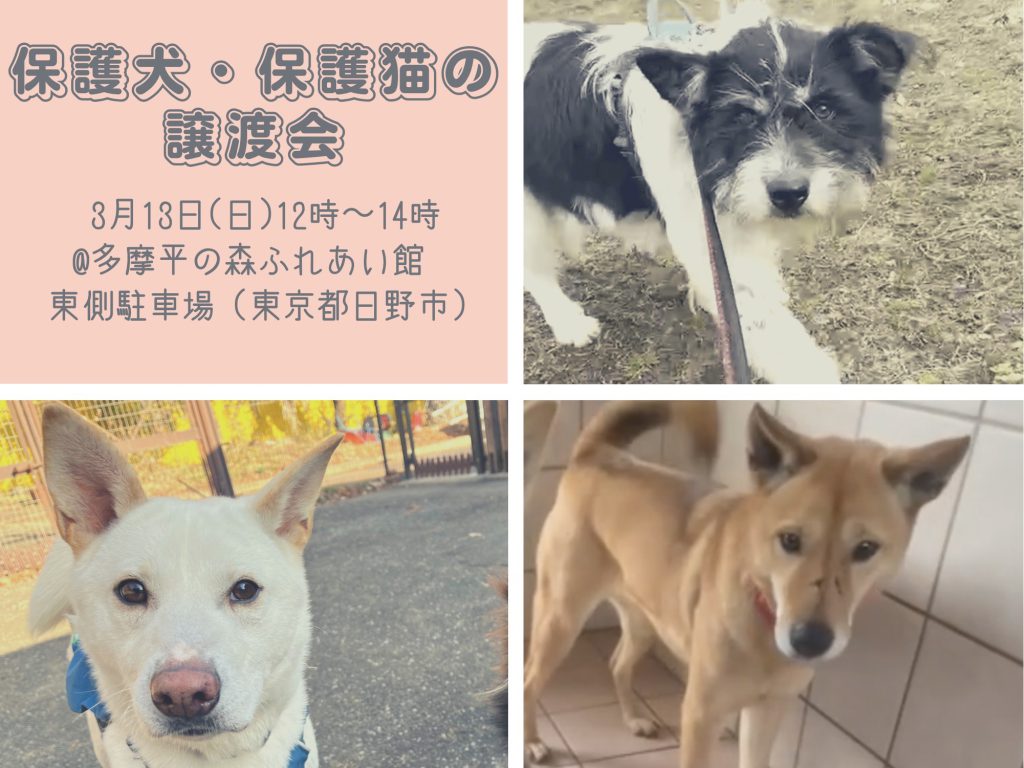 【ピースワンコの譲渡会】3/13(日)「保護犬・保護猫の譲渡会」に参加(あきる野譲渡センター)