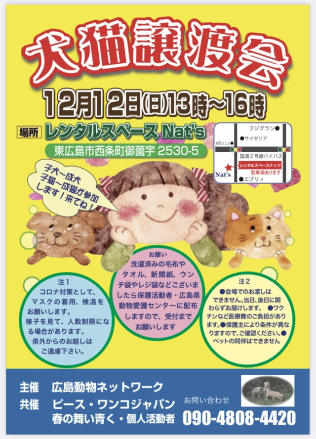 【ピースワンコの譲渡会】12/12「犬猫譲渡会」に参加(広島)