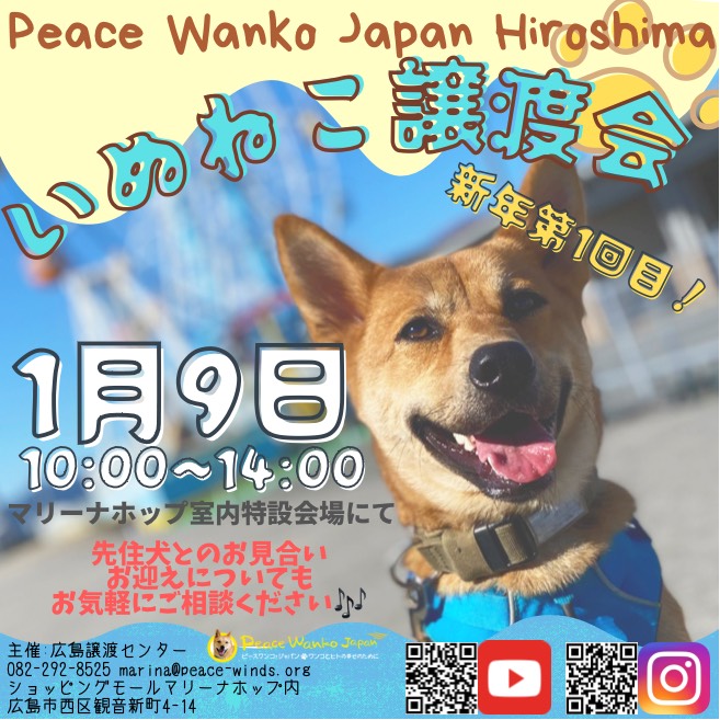 【ピースワンコのイベント】1/9(日)「会える!いぬねこ譲渡会」(広島)
