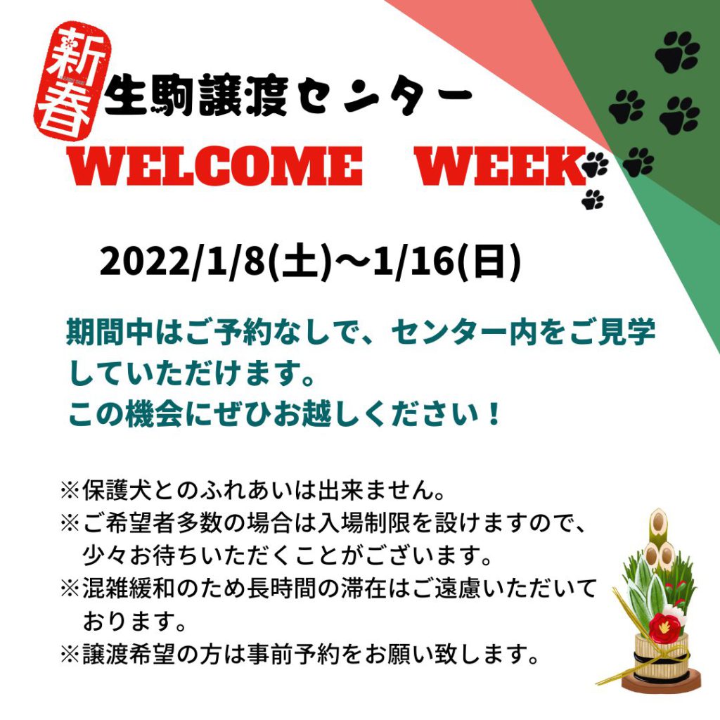 【ピースワンコのイベント】1/8(土)-1/16(日)「WELCOME WEEK」開催 (生駒譲渡センター)