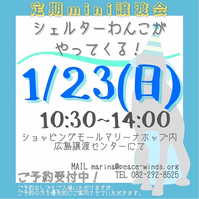 【ピースワンコの譲渡会】1/23(日)「シェルターわんこmini譲渡会」(広島譲渡センター)